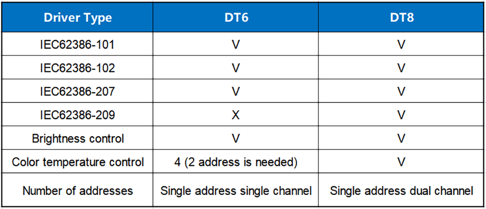 Q9: อะไรคือความแตกต่างระหว่าง DALI DT6 และ DT8?